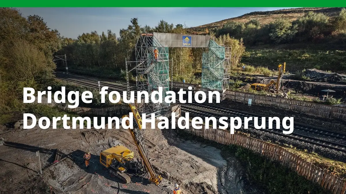 SPESA Spezialbau und Sanierung GmbH was tasked by the city of Dortmund to carry out foundation and soil improvement measures for the new building of the “Haldensprung” pedestrian and bicycle bridge. “For the foundation, we will install a total of 140 micropiles on the individual foundations of the new bridge,” explains Sebastian Otto, Project Manager at Spesa. “We will also execute 2,100 m of soil improvement using the low-pressure erosion method developed by Spesa.” One KLEMM KR 805 and one KLEMM KR 801 drilling rig are in use for the specialist foundation engineering works, as well as three employees per drilling rig. Because work is being carried out on an undeveloped site, it was also necessary to establish the full electrical and water supply. “We also constructed a temporary scaffolding overpass for pedestrians over the adjacent tracks,” continues Sebastian Otto. The work started in May 2024 and is expected to be completed by February 2025. This will lay the foundation for Dortmund’s garden of the future, which is sure to inspire visitors in 2027.