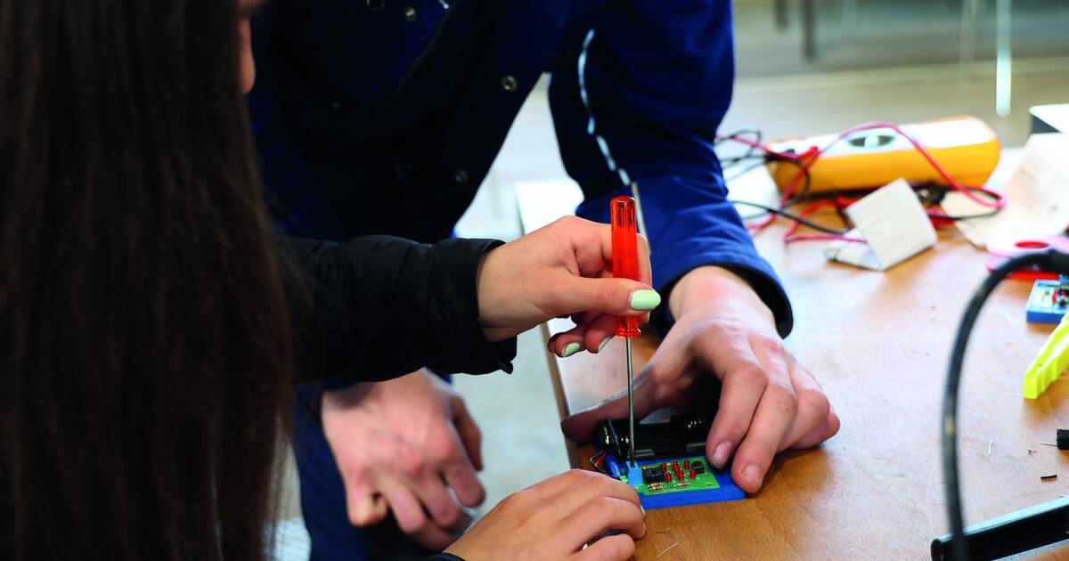 In diesem Jahr freute sich Ausbildungsleiter Gerhard Piske wieder 20 Schülerinnen aus der Region in der Lehrwerkstatt begrüßen zu können. Nach einer kurzen Vorstellung der Firma ging es von der Theorie auch schon mitten in die Praxis: In der Lehrwerkstatt konnten die Mädchen in vier Gruppen an verschiedenen Stationen ihre praktischen Fertigkeiten unter Beweis stellen. Angefangen vom Löten eines elektronischen Würfels über den Zusammenbau eines Smartphone-Halters und dem Nachbau einer Pneumatik-Schaltung bis hin zur Gravur eines Flaschenöffners mit dem eigenen Namen an der CNC-Fräsmaschine war so einiges geboten. Auch ein Abstecher zur Bauer Mini-World in der Alten Schweißerei stand auf dem Programm.