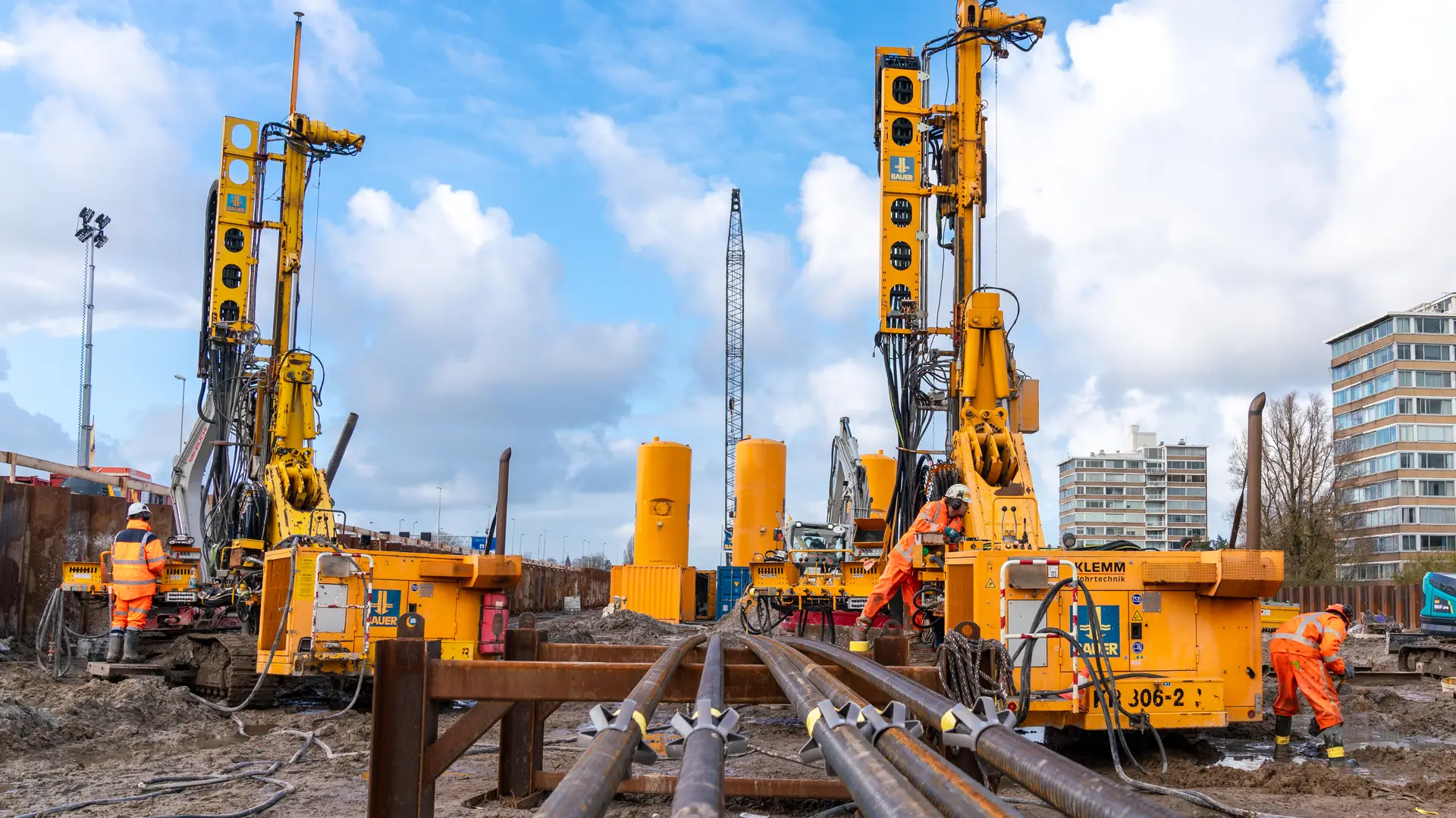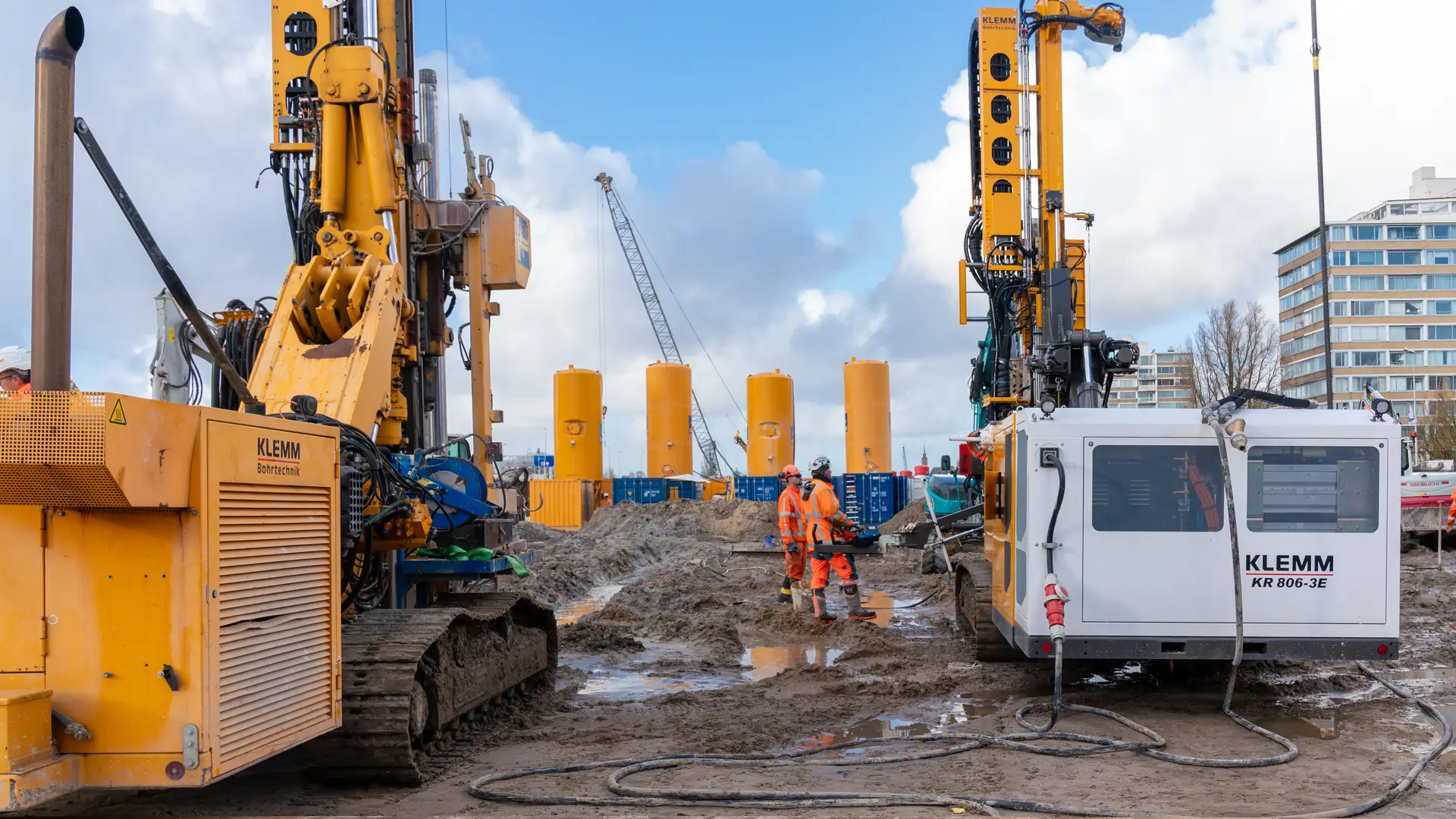 First use of the newly developed KR 806-3E electric drill from KLEMM Bohrtechnik GmbH on a construction site in Amstelveen